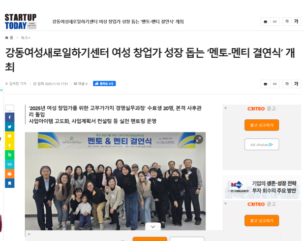 [STARTUP TODAY] 강동여성새로일하기센터x강동K-ISS멘토링센터 여성 창업가 성장 돕는 ‘멘토-멘티 결연식’ 개최