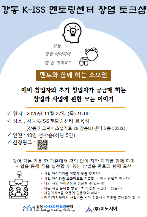 [토크샵] 강동 K-ISS 멘토링센터 창업 토크샵